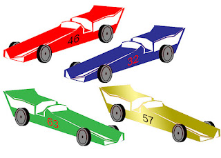 So, the Pinewood Derby is coming up for the cub scouts and I had to make up 3 posters to advertise when and where it would be. I thought Gee I'll look for some free clip art to use because I'm not making any money off the posters, but I couldn't find any that I really liked. Okay, I guess necessity really is the mother of invention after all, so I made my own pictures up instead, here they are hope you enjoy. :)